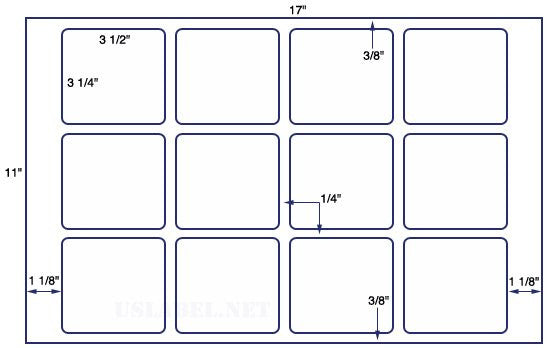 The US8551-3 1/2''x3 1/4''-12 labels on a 11'' x 17'' Sheet. is the high quality product is what you need, when you need it and will keep fresh a very long time good value.