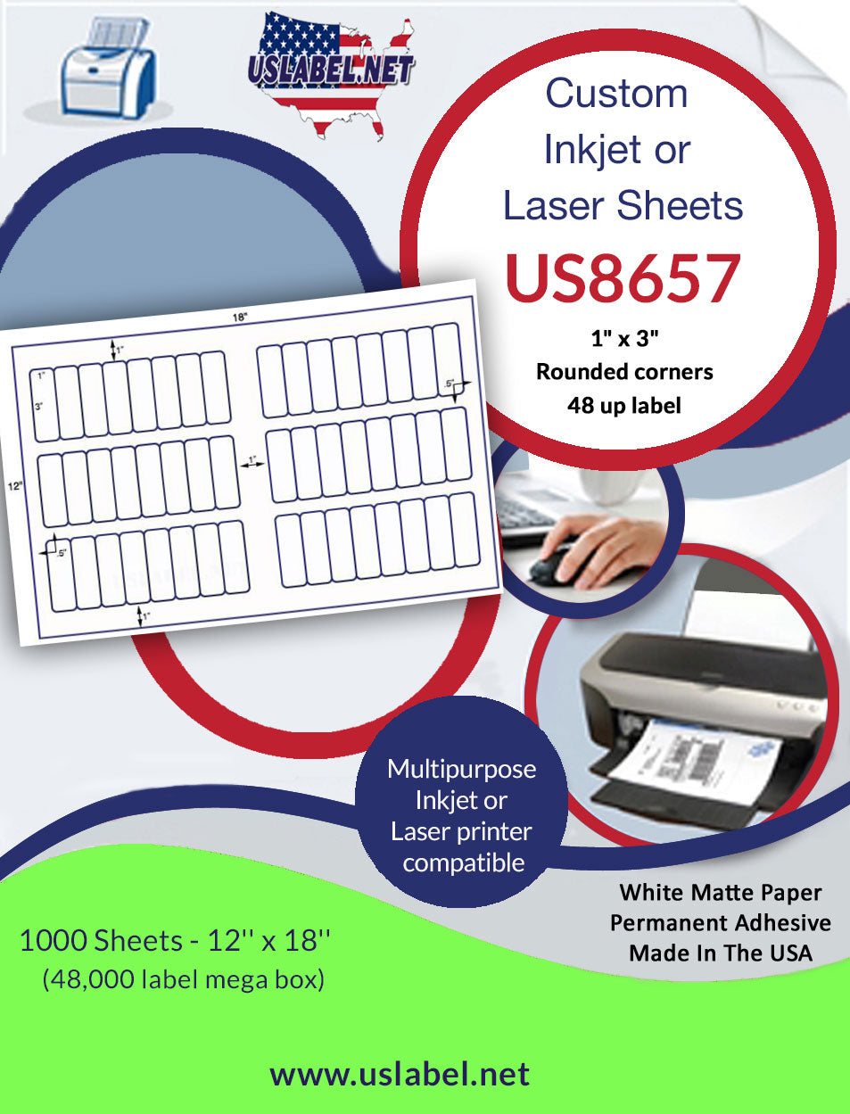 US8657-48up 1" x 3" label on a 12'' x 18'' sheet.