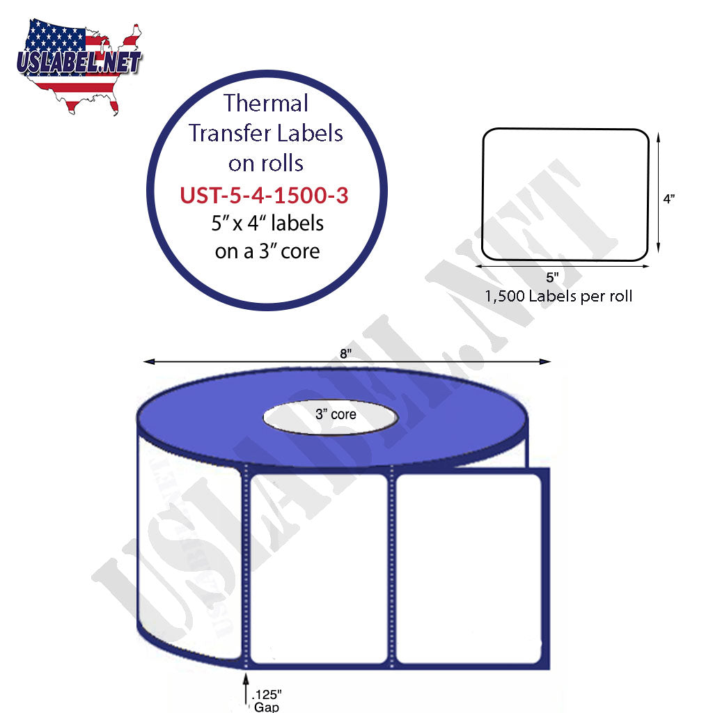 5'' x 4'' Thermal Transfer Labels on a 3 '' Core — 8 '' OD